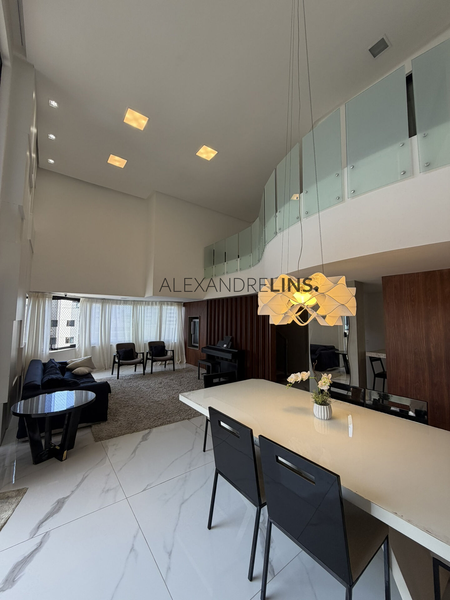 Cobertura Duplex sendo Primeiro pavimento com terraço gourmet com bancada de apoio e churrasqueira, lavabo e terraço descoberto com deck e piscina, sala de estar e jantar com pé direito alto, 1 suíte que foi transformada em uma sala de TV, ampla cozinha com bancada para refeição, área de serviço e DCE. Segundo pavimento com mezanino, 4 suítes independentes, sendo 1 máster. Cobertura com 224 m² de área útil, 3 vagas de garagem no subsolo, armários planejados Florence, ponto de SPLIT nos quartos, chuveiros com aquecimento solar.