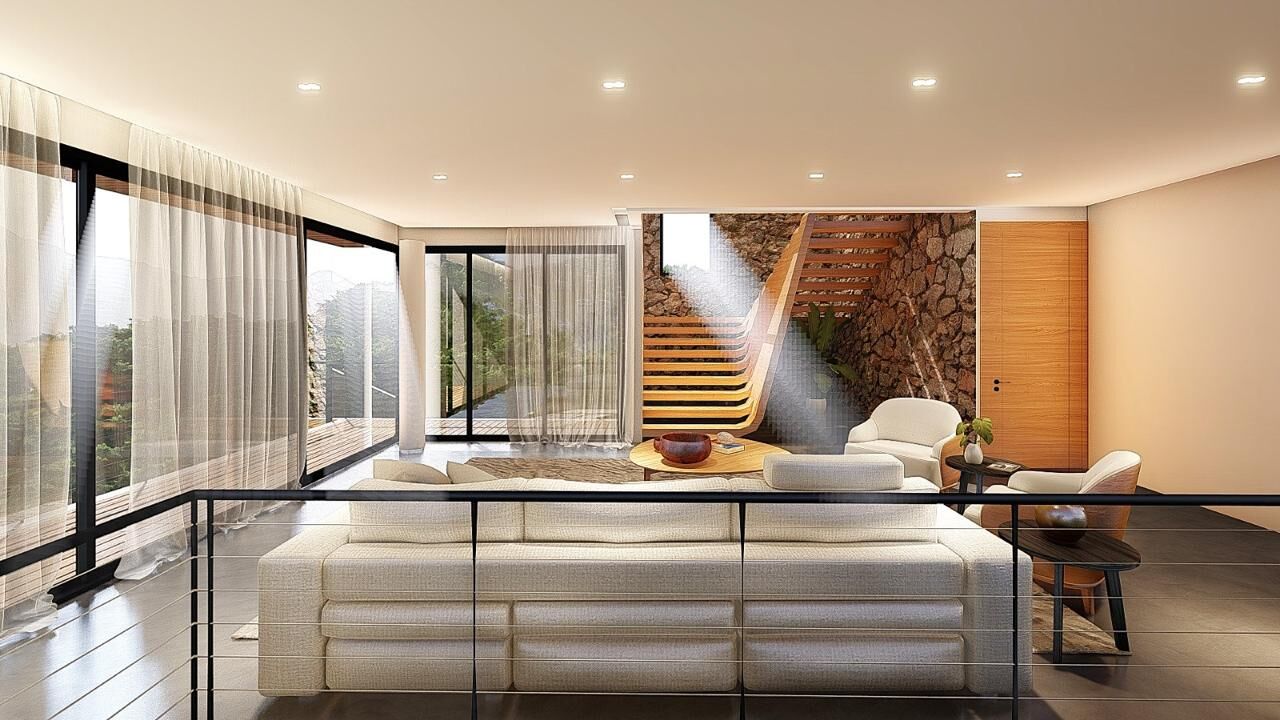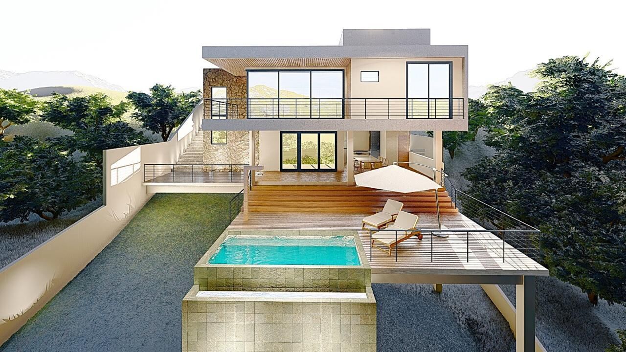 Casa em construção sendo Pavimento térreo com sala de estar, ampla varanda em L, 3 suítes independentes, sendo 1 máster, garagem coberta para 3 carros. Pavimento inferior com 1 suíte social, ampla cozinha com ilha, terraço gourmet com apoio e lavabo, terraço descoberto com deck e piscina, área de serviço, DCE e área de varal. Casa com terreno com área total de 680 m² e 350 m² de área construída. Casa com excelente padrão de acabamento, piso em porcelanato, ambientes com pontos de SPLIT.