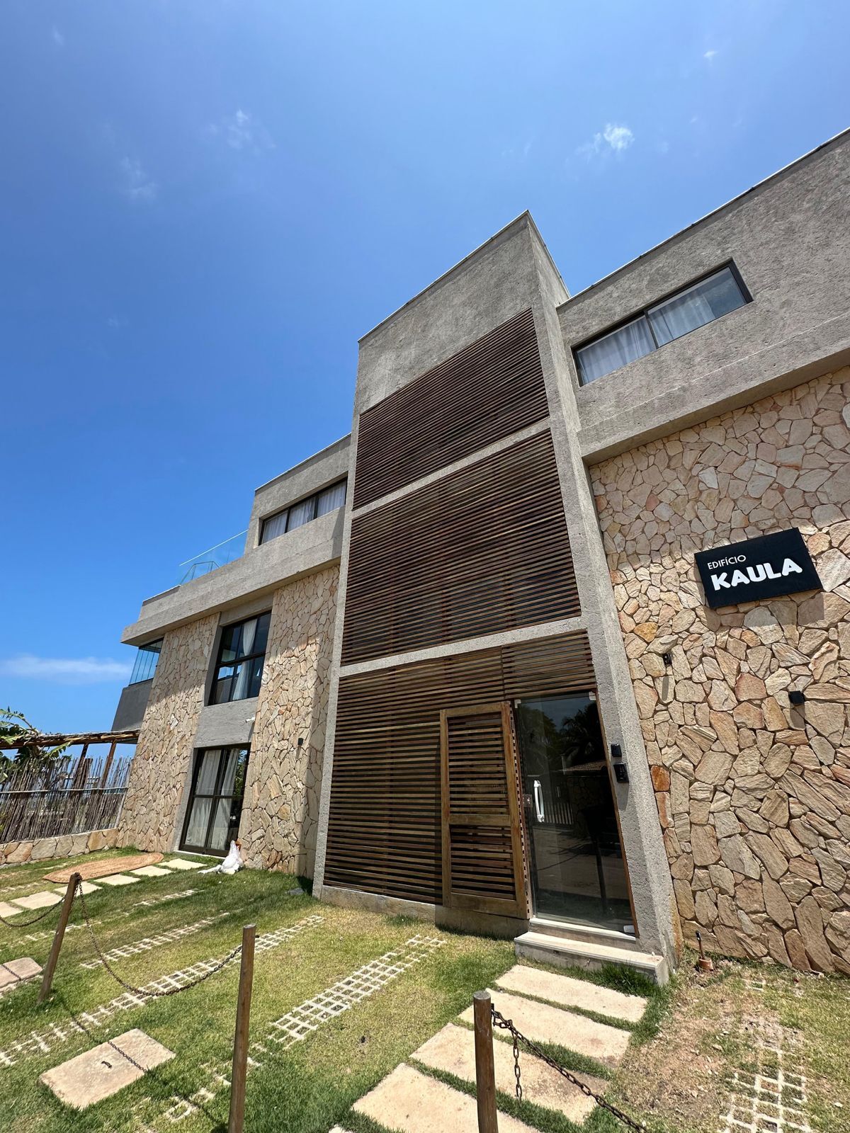 Condomínio com estacionamento frontal, apenas 6 unidades e elevador.