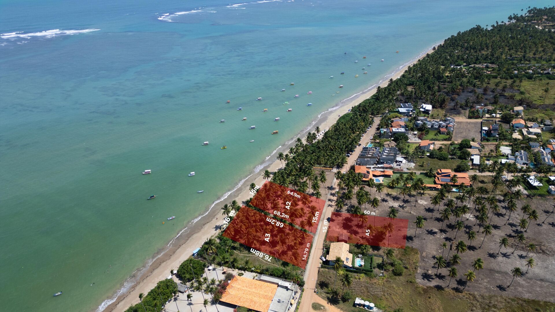 Dispomos de 2 terrenos vizinhos frente mar na praia do Patacho com 30 metros de faixa de praia, totalizando mais de 2 mil m². Negociamos o terrenos separados.